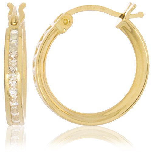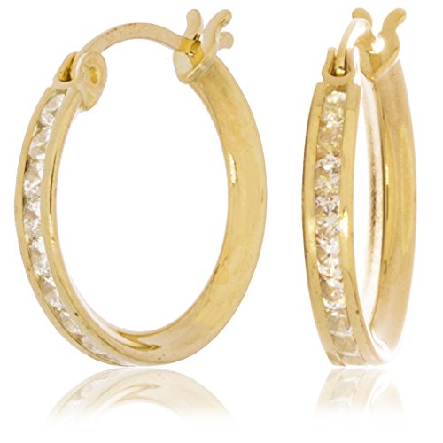 The hoop earring is an enduring style must have for every trendsetter. These earrings are an ideal option for those looking for a sturdy, classic hoop style that will withstand the test of time. Enjoy classic elegance that can be worn day to night. This earring features round brilliant cut white cubic zirconia stones channeled completely around the outer facing of the hoop for extra sparkle. The hoop is slighly flexible for comfort. We stay in front of jewelry trends and bring you only the best through our curated selections. At Trusted Jewelers you can Collect, Customize and Create a look of your own or give one to your special someone. Jewelry you can trust is more than a unique expression of you. Gold lasts a lifetime and is a sound investment.Feature