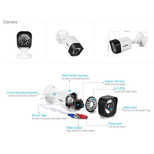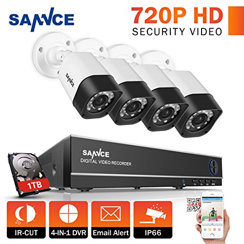 SANNCE 8CH 1080N Security Camera System with 1TB Hard Drive and (4) Night Vision Surveillance Cameras, IP66 Weatherproof , P2P Technology/E-Cloud Service, QR Code Scan Remote Access