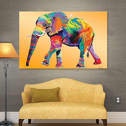 Linz Lynn's the ride, gallery wrapped canvas is a high-quality canvas print depicting an elephant as it triumphantly marches along. A bright and colorful addition to any room.