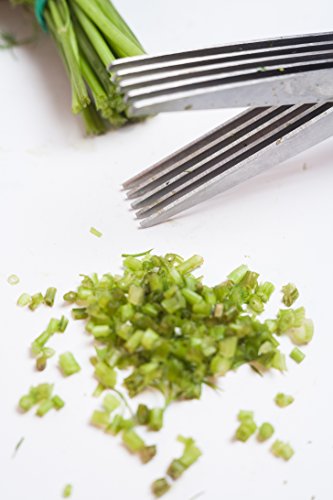 - • POWERFUL BLADES – Slice through herbs, vegetables, green onions and more with five razor sharp blades and a heavy duty hinge that lets you cut with ease.