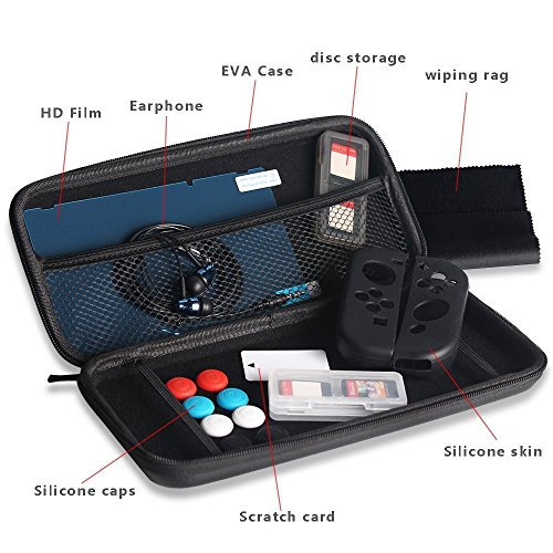 -. Feature : Kit Contains: Stereo Ear Buds, Cleaning Cloth, Screen Protector, Case, Silicone Controller skin and control caps, soft card / VERY CONVENIENT - Includes all you need for your Nintendo SWITCH in one box / Protect your Nintendo Switch in our Unique Stylish Black Carrying Case! / Worthy of Trust - OIVO brand owner , the product is fullful by Amazon , support for 100% MONEY BACK GUARANTEE, if you are not satisfied after experiencing your product,We will refund you 100% of what you paid