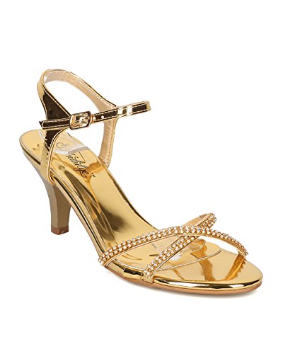 Indulge Women Ankle Strap Kitten Heel Sandal - Rhinestone Kitten Heel Party Shoe - Wedding Brid...