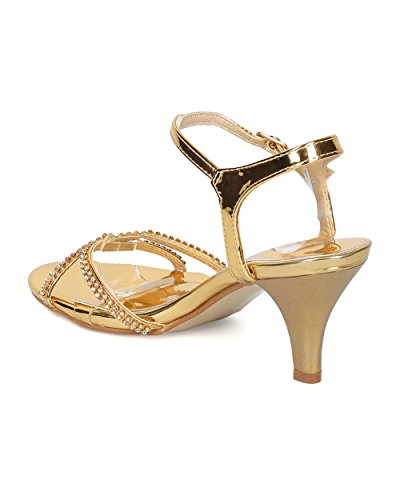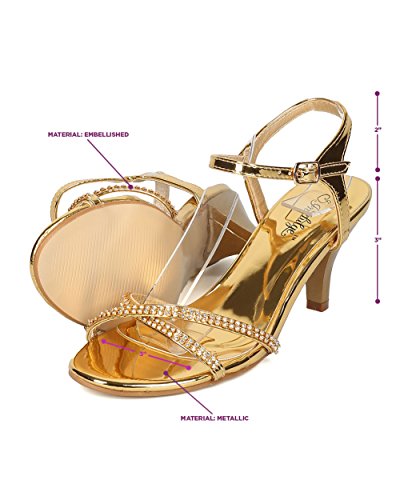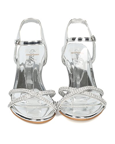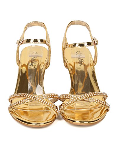 Product Description These modern yet classic party dressy sandal are best compliment for any special occasions! Studded rhinestone in cris cross vamp and buckle ankle strap for easy on and off. Padded insole for all day comfort. 0
