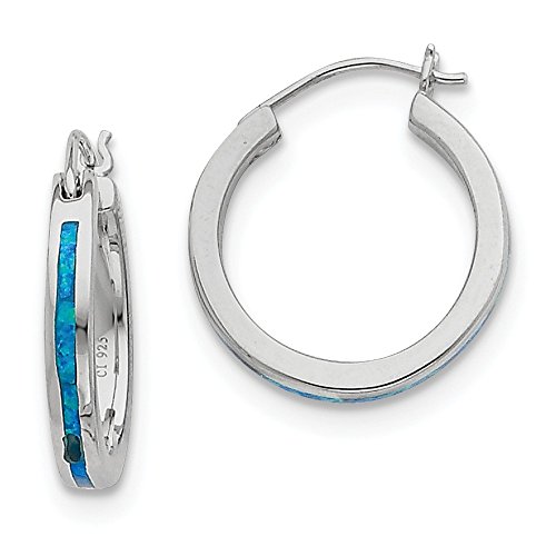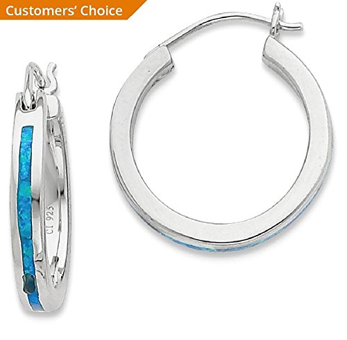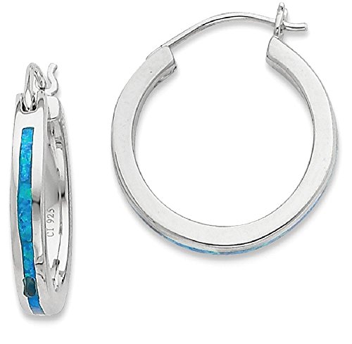 ICECARATS DESIGNER JEWELRY 925 STERLING SILVER CREATED BLUE OPAL INLAY HOOP EARRINGS EAR HOOPS SET FOR WOMEN