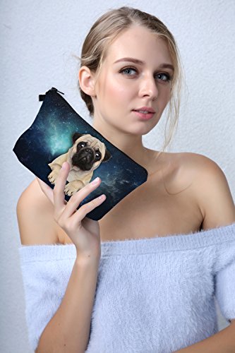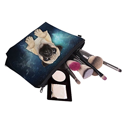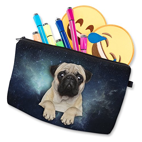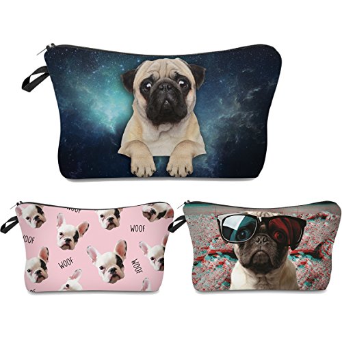Waterproof Cosmetic Bag ,3 piece Set Princoool Roomy Travel Toiletry Pouch Makeup with Zipper (Pug)