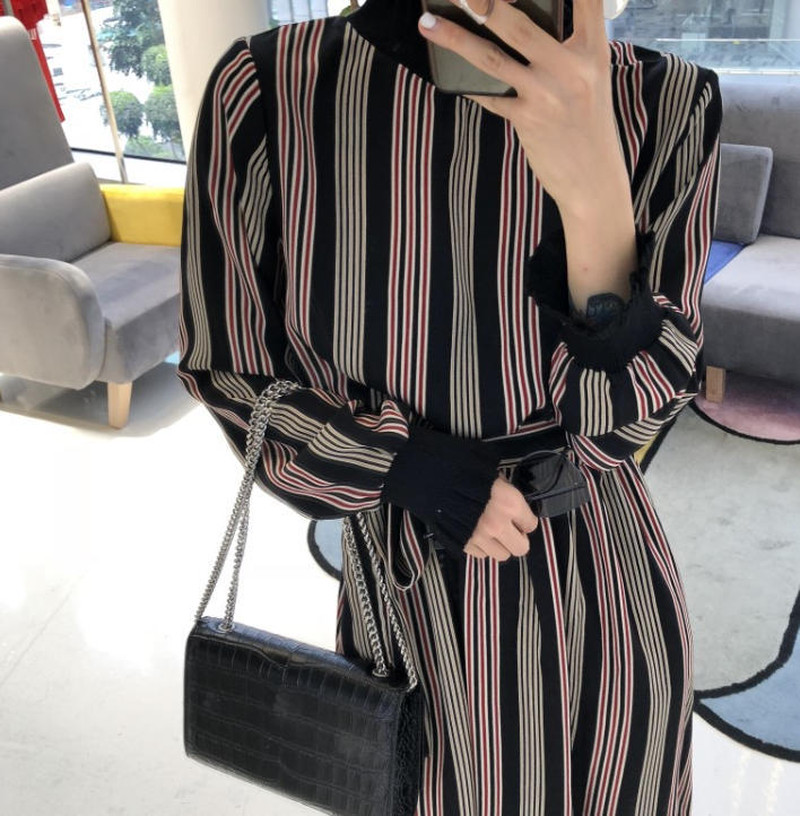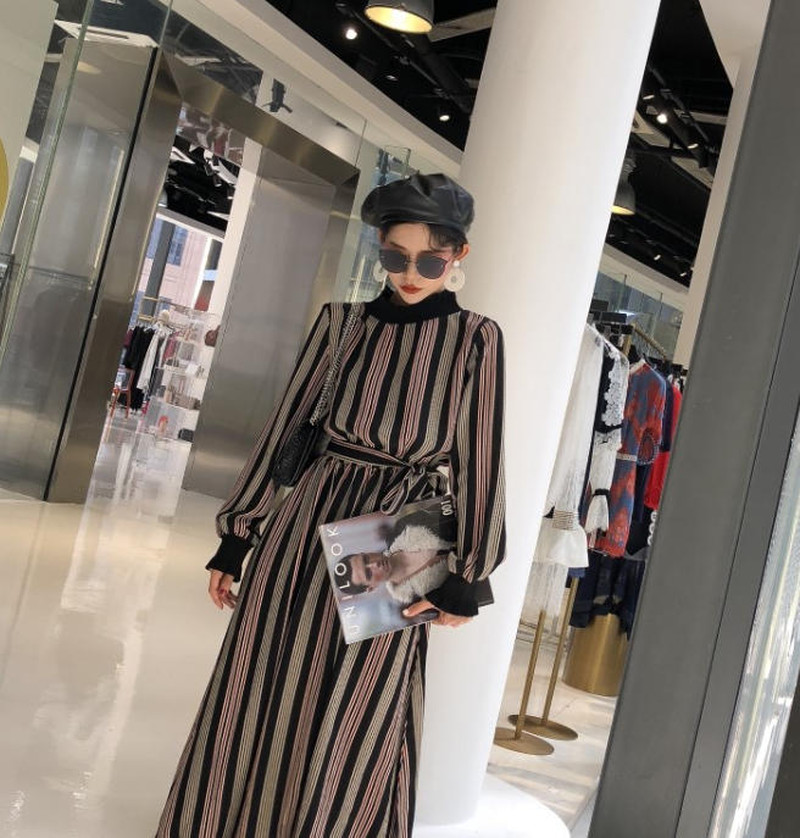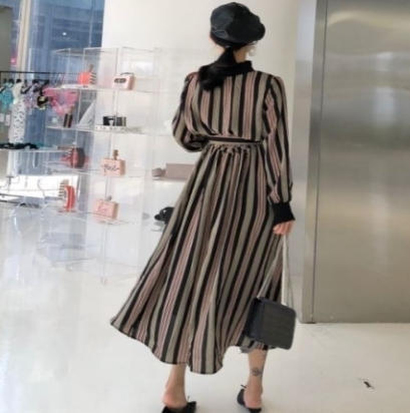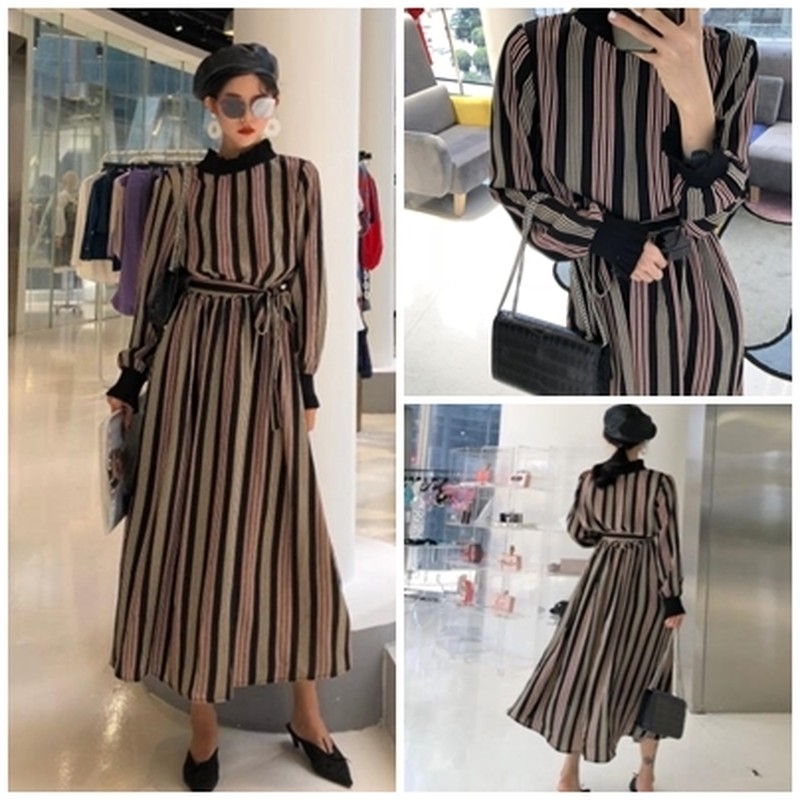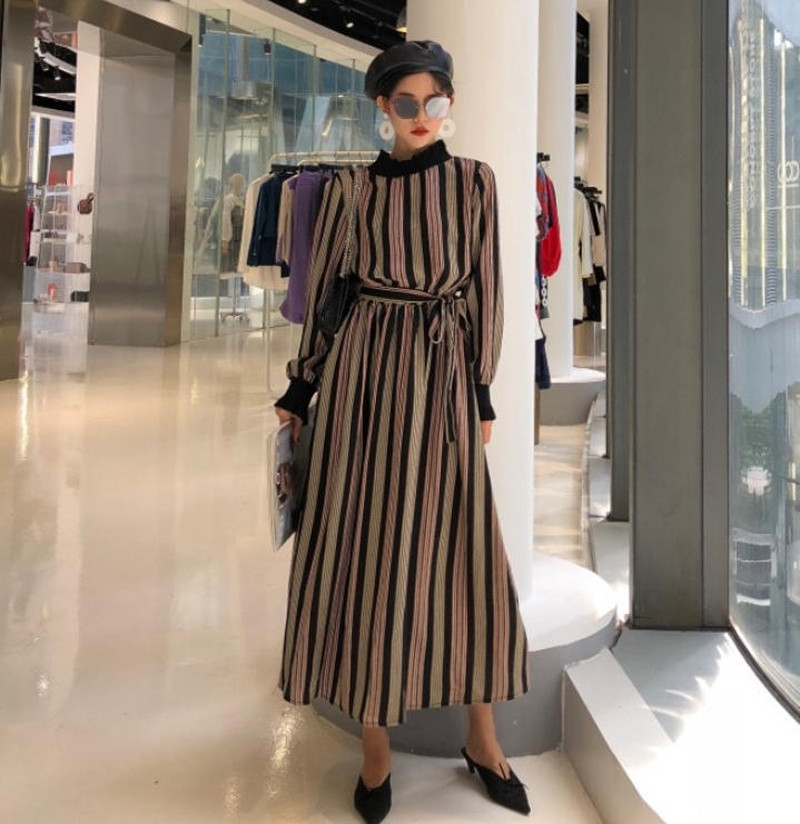 ♢ポイント♢ レトロと上品が混ざったおしゃれなロングワンピース。 ストライプ柄でボディラインをキレイに見せてくれます◎