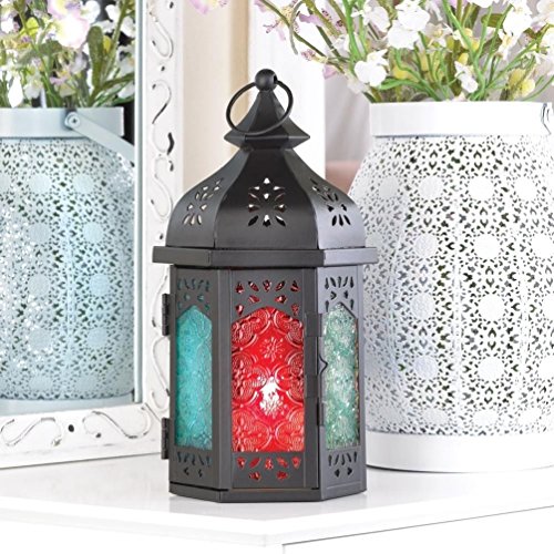 -. Title : Lot Of 10 Turret Multi-Color Glass Moroccan Design Candle Lanterns