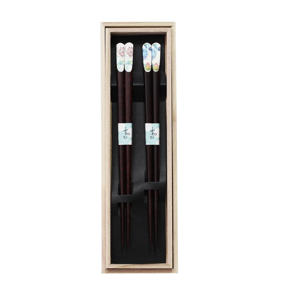 淡い花柄と木の温もりが優しい、ペア箸セット。