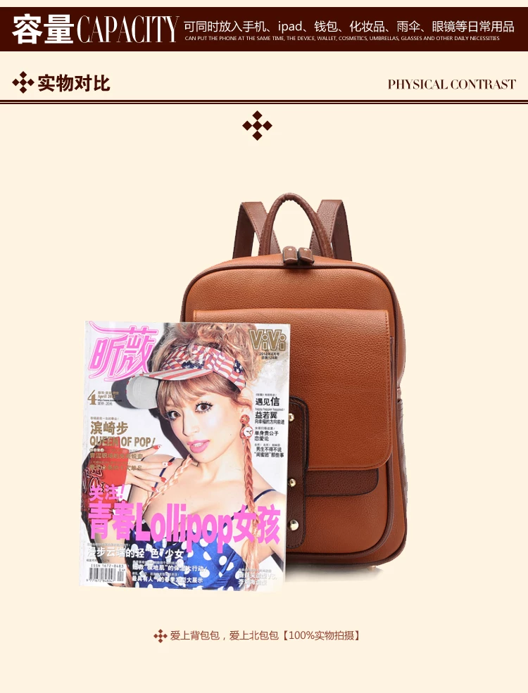 新品韩版女包复古旅行背包 内部1个拉链袋,1个隔层拉链袋,2个置物袋 | |||
