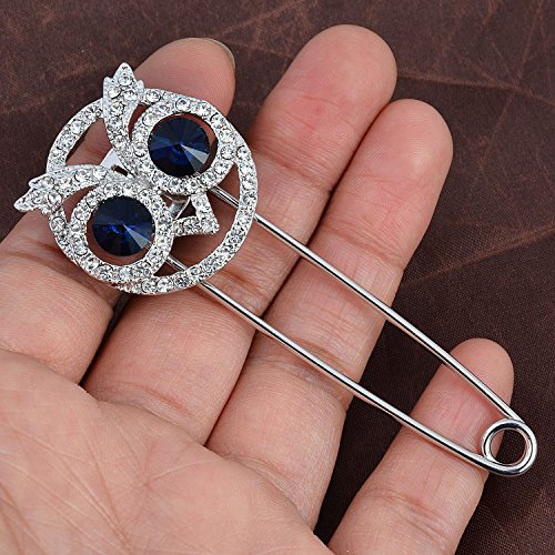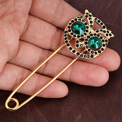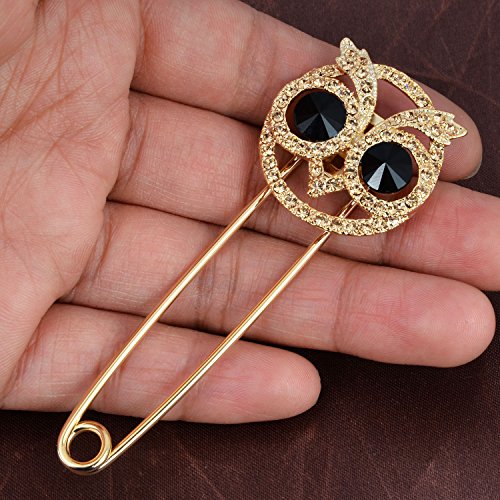 -. Title : Vintage Rhinestone Crystal Owl Large Stainless Steel Safety Pins Brooches Tie Hat Scarf Badge Brooch 3"
