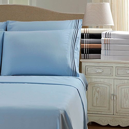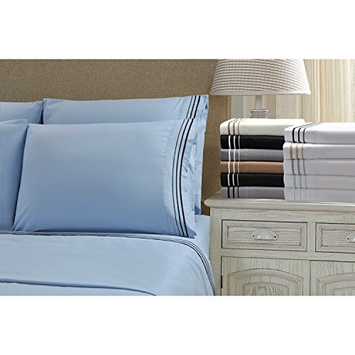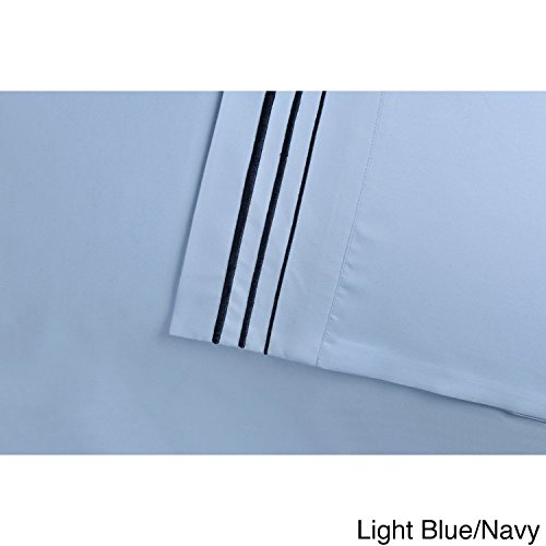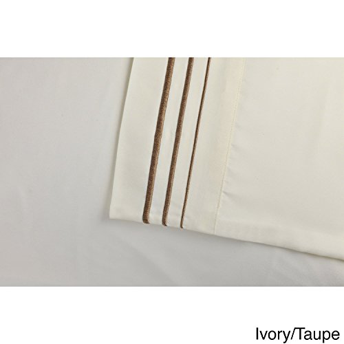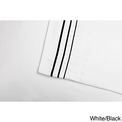 Studio : Home City Inc Publisher : Home City Inc Product Description Dress up your bed in luxury with this stylish embroidered deep-pocket sheet set. This lovely set features 100 percent microfiber construction for durability and exceptional comfort. Available in a variety of lovely colors, this set has a three-line embroidery design that gives your bed a classic appeal. This deep pocket sheet set is wrinkle resistant and machine washable for hassle-free maintenance.Set includes: One (1) flat sheet, one (1) fitted sheet, and four (4) pillowcases (two (2) included in Twin and Twin XL) Weave: PlainSheet type: PrintedFitted sheet pocket depth: 15 to 18 inchesFully elasticized fitted sheet: YesColor options: Black/ Grey, Black/ White, Grey/ Black, Grey/ White, Ivory/ Taupe, Light Blue/ Navy Blue, Taupe/ Ivory, White/ Black, White/ Blue, White/ Gold, White/ Grey, White/ WhiteTheme: 3-line embroideryMaterials: 100-percent microfiberCare instructions: Machine washableFull dimensions:fitted sheet: 54 inches wide x 75 inches longflat sheet: 81 inches wide x 96 inches longQueen dimensions:fitted sheet: 60 inches wide x 80 inches longflat sheet: 90 inches wide x 102 inches longKing dimensions:fitted sheet: 78 inches wide x 80 inches longflat sheet: 108 inches wide x 102 inches longCalifornia King dimensions:fitted sheet: 72 inches wide x 84 inches longflat sheet: 108 inches wide x 102 inches longTwin dimensions:fitted sheet: 38 inches wide x 75 inches longflat sheet: 66 inches wide x 96 inches longTwin XL dimensions:fitted sheet: 38 inches wide x 80 inches longflat sheet: 66 inches wide x 100 inches long 0