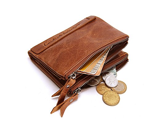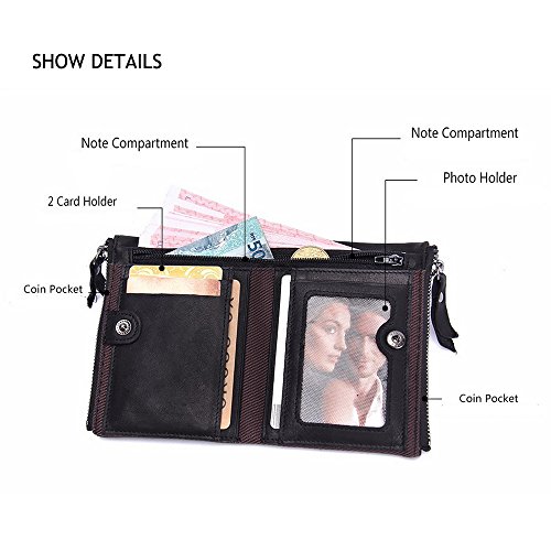 -. Feature : Material: This bifold wallet is made of 100% pure, genuine leather. / Size: 4.72*3.74*0.79inches (19*9.5*2cm) / Functional Design: 6*Card Slots, 1*Window ID, 3*Zipper Pockets, 2*Money Pockets / Advanced RFID Secure Technology: our unique metal engineered specifically to block 13.56 MHz or higher RFID signals and protect the valuable information stored on RFID chips. / Best Gift For Men: CZGBT Money Clips for Men make the best gifts for Christmas, birthday, fathers day, graduation or just because gift.
