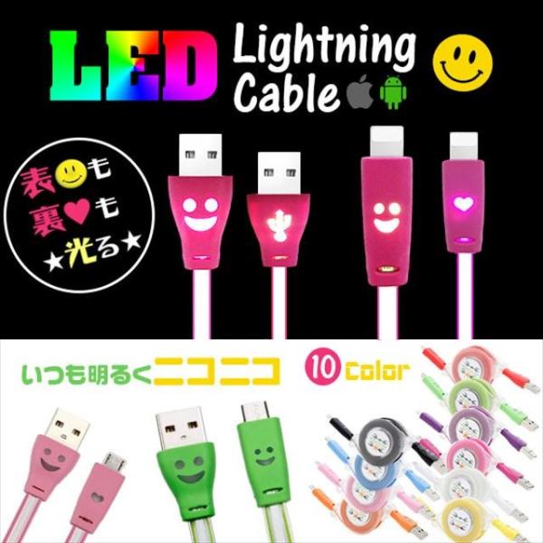ニコちゃん iPhone/Android 光るUSB充電ケーブルUSBを接続すると先端部分の表面と裏面にあるマークが光ってます!そして、巻き取りでコンパクト!ケーブル部分も光が流れています。長さ:1m 対応機種:・iPhone7 iPhone7 plus・iPhone6s iPhone6s plus・iPhone6 iPhone6 plus・iPhone5 iPhone5s iPhone5c・iPod・iPad ・Android注意:○アップル(apple)社純正品ではございません。○こちらのケーブルを利用したことによる、iPhone本体及びその他接続機器の破損、故障に関しましては当社は一切の責任を負いかねます。ご了承の上ご注文をお願い致します。※デザインや仕様の一部は予告なく変更となることがございます。予めご了承ください。