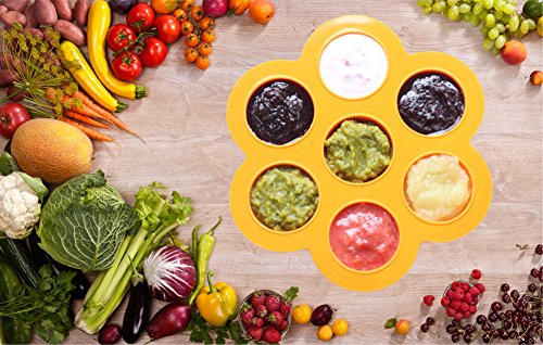 - Feature : SAVE MONEY & TIME - Don't throw good quality baby food away which you spent time making. Save money and time by storing your homemade recipes for use later. With 7 perfect 2.6 oz portioned compartments you can also save time preparing food for the whole week for your toddler / STACKABLE & REUSABLE - This utensil comes with a EASY-TO-USE clip on lid which makes it easy to stack multiple trays in your freezer. Made with professional food-grade silicone so you can reuse it thousands of times. Dishwasher, Microwave, Oven (460°F) and Freezer (-40°F) Safe / EFFORTLESS POP OUT - No more breaking or chipping nails! Removing frozen food has never been easier. The rounded shape and press out bottom means you can pop out each portion with a minimum amount of effort. The food remain intact without any cracking or crumbling / MULTIFUNCTIONAL - These trays are not just for feeding and weaning, store a variety of things - large ice cube maker, ice cream tub, baking cupcakes, mini muffins, mold for jello, herbs such as sage, yogurt, sweets on Halloween and other holidays, buttons, paint pots, other arts & crafts / PERFECT GIFT - This is the perfect present for new & expectant parents. Gifts for baby showers, Christmas holidays mother's day, father's day and more. Check out the special offers section to see discounts on multiple quantity purchases