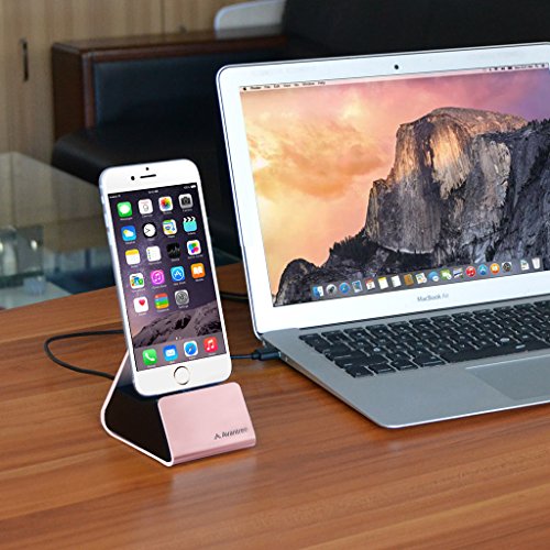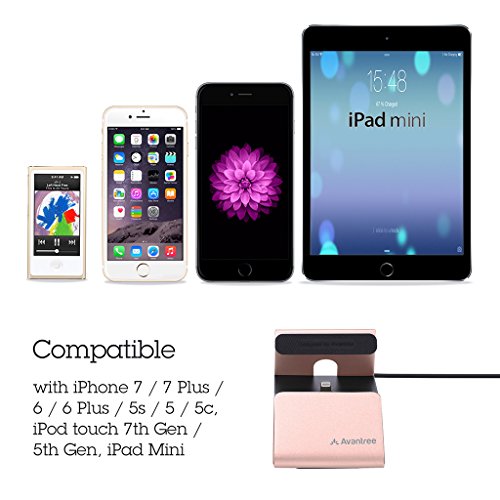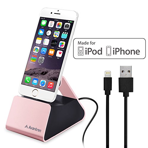 Avantree Aluminum iPhone Charging Dock with Lightning Cable [Apple MFi Certified], USB Data Sync & Charger Stand Cradle for iPhone 7, 6 plus, 6, 5 - Rose Gold [2 Year Warranty]