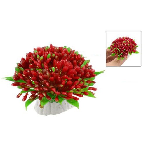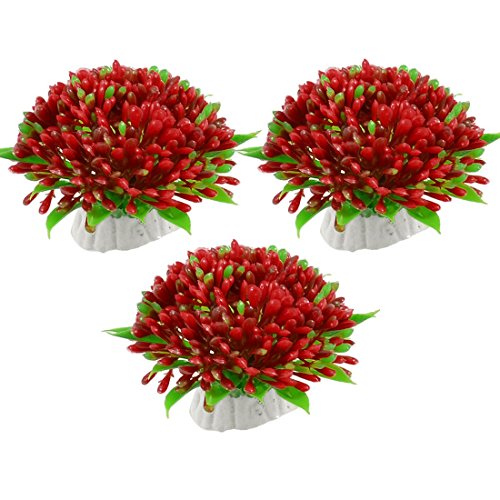 uxcell® 3 Pcs Green Red Lifelike Aquarium Plastic Plant Flower Ornament