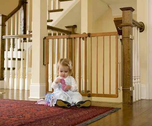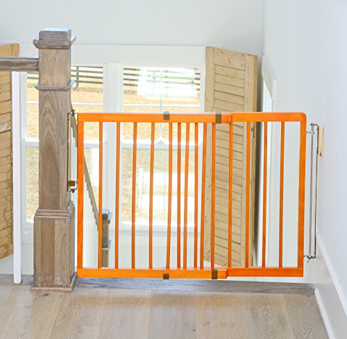 -. Feature : Great for stairways or any indoor area / Attractive solid wood construction / One handed latch operation / Simple to install / Adjustable width and mounts at angles up to 30 degrees