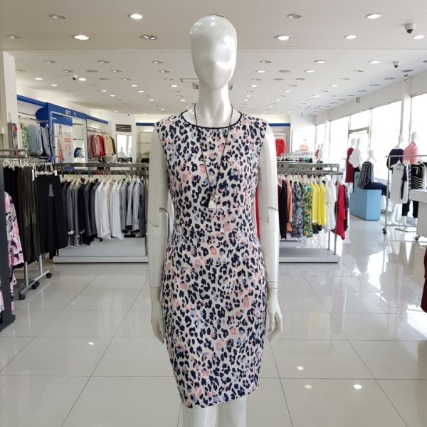 호피프린트 턱디테일 반팔 H라인 원피스 -JA7U6-WOP420-핑크/프린터