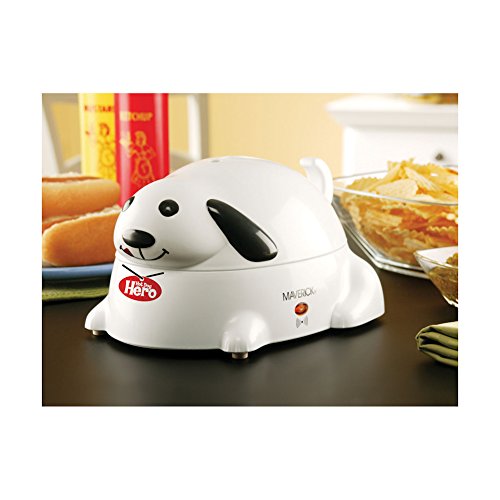Studio : MAVERICK Publisher : MAVERICK Binding : Kitchen Product Description Let Hero make you up to six delicious hot dogs at once. Fill him with water from the included pourer, lift the lid by his tail, and place up to six hot dogs inside. He steam-cooks up to four hot dogs in under seven minutes, or six hot dogs in under nine minutes. Indicator light lets you know the steamer is in use, and auto shut-off features means you'll never have an over-cooked hot dog again. Voice-chip "barks" when the hot dogs are done-and stops when unplugged. Includes a measuring cup and dishwasher-safe food tray. Plastic with metal components. Two-prong cord plugs into standard electrical outlets. UL listed. Serve THE WHOLE FAMILY - Hero makes up to six hot dogs in less than nine minutes. Barks WHEN DONE - Auto shut-off and voice chip "barks" when the hot dogs are ready. Safe TO OPEN - Use Hero's tail as a convenient handle, letting you avoid steam scalds when you lift the lid. Easy-TO CLEAN - Dishwasher safe food tray lifts out for easy cleaning. Fits ON YOUR COUNTER OR IN YOUR CABINETS - And doesn't take up too much space on your counter. Measures 9.5" by 7" x7". 0