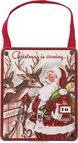 Primitives By Kathy Countdown 3.75 Inches x 4.50 Inches Christmas Is Coming Santa Sign