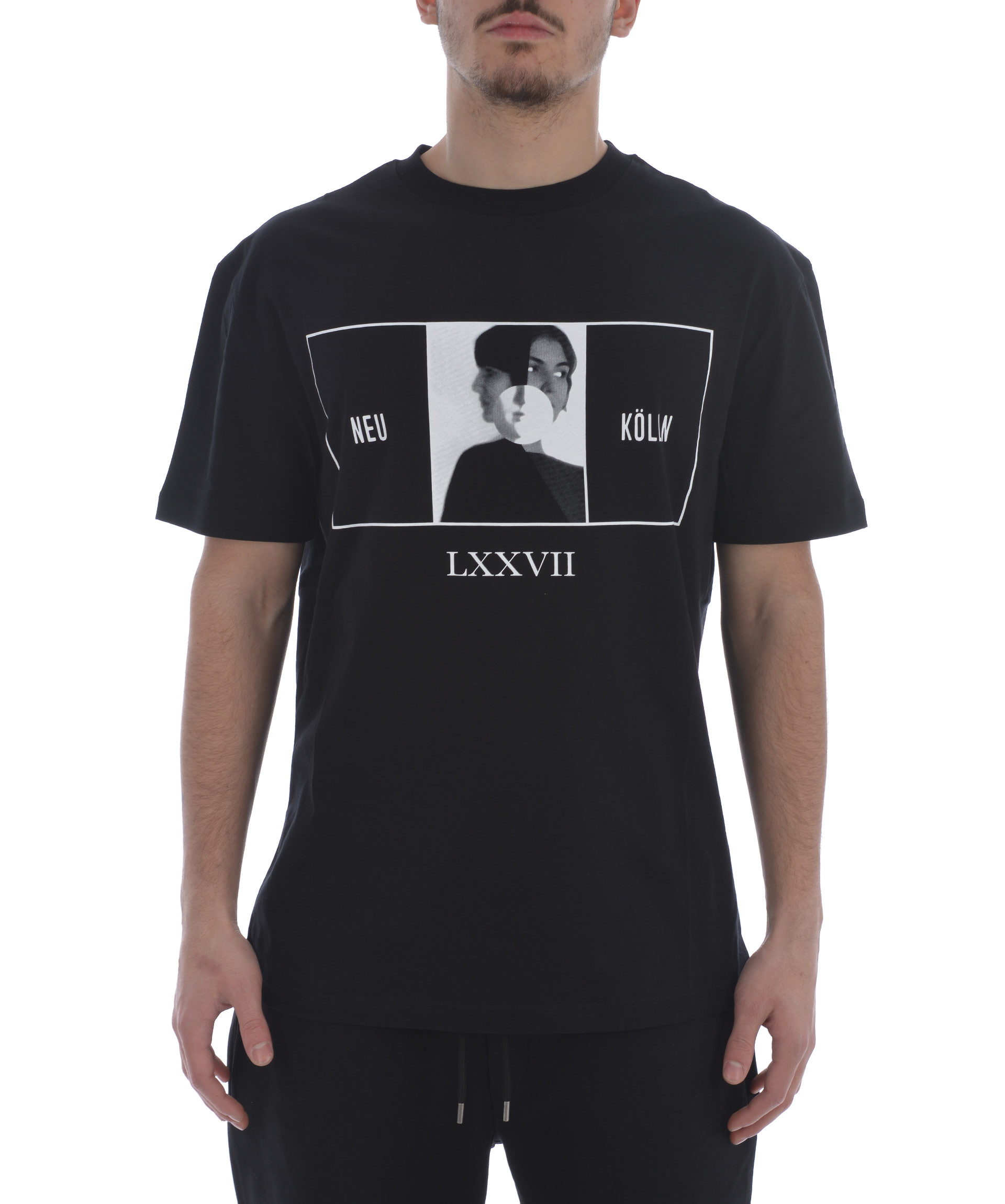 Neu Kölln T-Shirt from MCQ Alexander McQueen: Black Neu Kölln T-Shirt with a printed design, a crew neck and short sleeve.