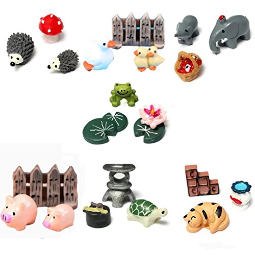 Buytra 7-Set/21 Pieces Miniature Fairy Garden Animals World Ornament Dollhouse Plant Pot Figurine DIY Decor Home Decoration