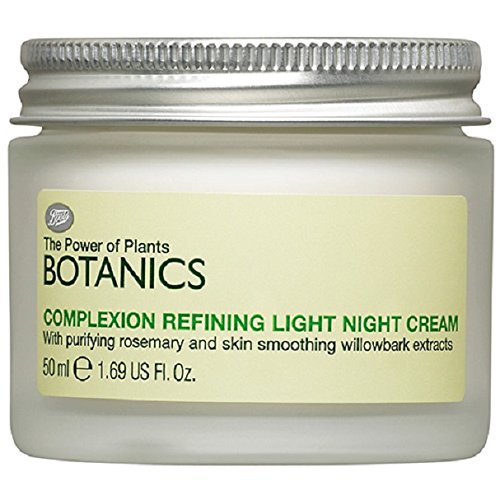 -. Binding : Health and Beauty -. Brand : Boots -. EAN : 5000167099836 -. Feature : Packed with clarifying rosemary and willowbark extracts / Works through the night to guard against blocked pores through gentle exfoliation / Apply before you retire to bed in the evening and it will work its magic while you sleep / Wake to hydrated and conditioned skin and a smooth, healthy complexion / 1.69 fl. oz. -. Label : Boots -. Manufacturer : Boots -. MPN : 20-75-121 -. PackageQuantity : 1 -. PartNumber : 20-75-121 -. ProductGroup : Beauty -. ProductTypeName : HEALTH_PERSONAL_CARE -. Publisher : Boots -. SKU : 219254 -. Studio : Boots -. Title : Boots Botanics Complexion Refining Light Night Cream 1.69 fl oz