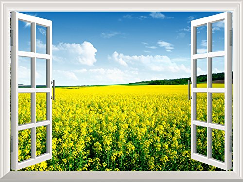 -. Title : High Quality Removable Wall Sticker / Wall Mural - Yellow Rape Field View out of the Open Window Creative Wall Decor