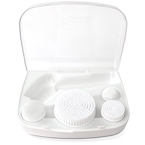 -. Feature : USE IN THE SHOWER - Water-Resistant rotating facial and body brush for deep cleansing and exfoliating. Helps to reduce the appearance of problem areas such as: oily skin, dry patches, fine lines, blemishes, visible pores, blackheads and wrinkles. / SKIN CARE MADE EASY - Ideal for the preparation and removal process of cosmetics. / CREATES HEALTHY LOOKING SKIN - Gentle massage actions helps to stimulate new skin cell production creating firmer & healthy glowing skin. / COMES WITH 4 HEADS - System includes: 2 face exfoliators (1 soft for sensitive skin types & 1 medium for normal skin types), 1 body exfoliator and 1 pumice sphere (refills available). Water-Resistant strap for convenient hanging. / BRING IT ANYWHERE - Goes perfect with the Storage and Travel Case sold separately on Amazon. Case includes $21 worth of replacement heads! 20% off the Case when you buy both together!