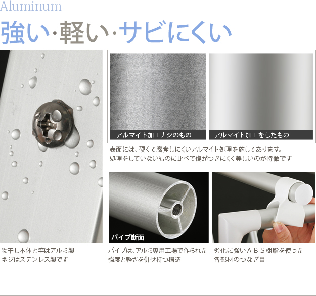 ●材質:本体・竿-アルミ、ジョイント-ABS樹脂、竿ジョイント-PP樹脂