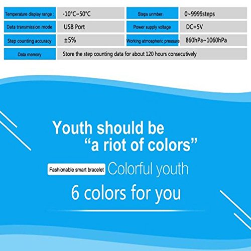 -. Feature : ✔ Small and light, simple and fashionable,Design of circular area for wrist, more comfortable to wear / ✔ Built-in 3D acceleration sensor with high sensitivity, can catch your every small action, making more accurate pedometer,Tracing your burning calories, movement step, movement distance / ✔ Temperature display function, easy for user to know the environment temperature / ✔ Strap integrates USB Interface, plug and play / ✔ Compatibility: For IPhone 4S/5/5S 6 6 Plus , iPad 3/4/5/6 plus some Android phones (Android 4.3 or above with bluetooth 4.0 or above)