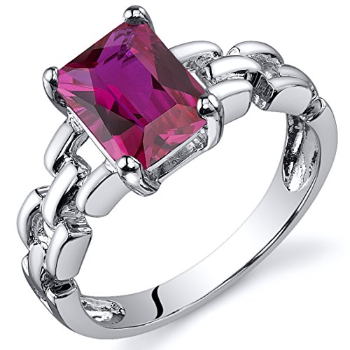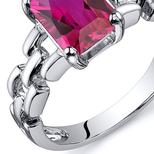 -. Title : Created Ruby Ring Sterling Silver Rhodium Nickel Finish Chainlink Style 2.00 Carats Sizes 5 to 9