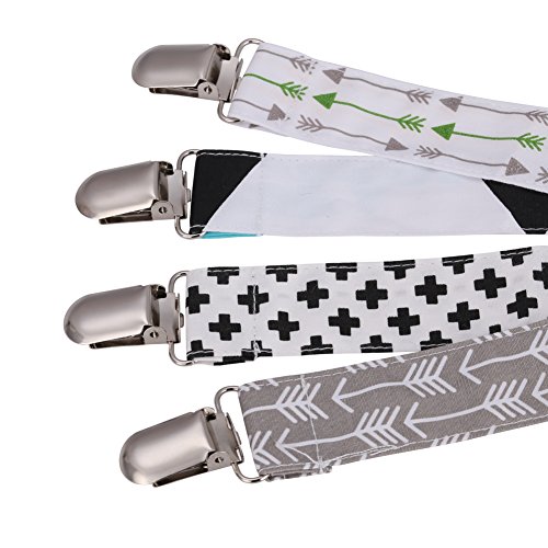 Also the nice patterns actually make it fashionable and trendy with any outfit. It's an added perk that it will work with any pacifier your baby has. While using the Pacifier Clips on your baby, no more worrying about dropping it on a germy floor