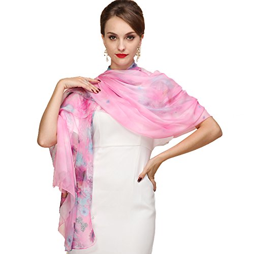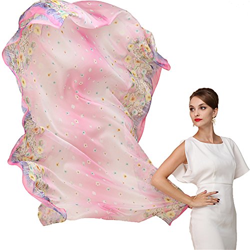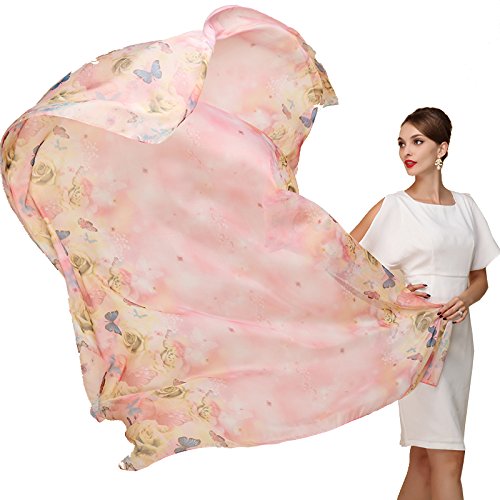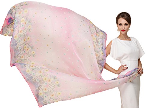 USIX Large Fashion Chiffon Rectangle Scarf Physical Sun-Block Beach Cover-Up Floral Print Fashi...