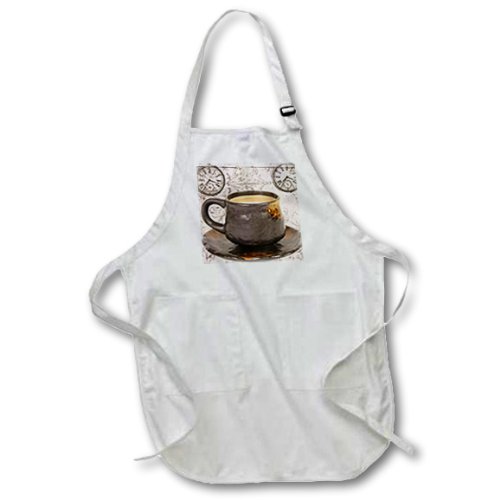 3dRose apr_110231_1 Coffee Time Vintage Stop Watches Art 22-Inch Width by 30-Inch Length Apron with Pockets, Full Length, White