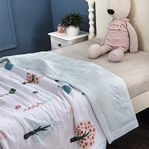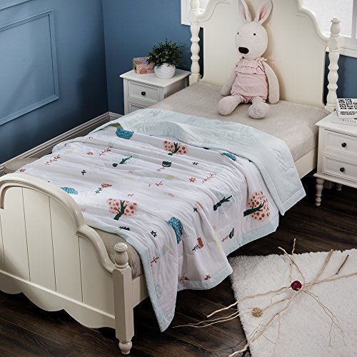 J-pinno Boys & Girls Cute Flowers & Trees Muslin Quilt Comforter Bedding Coverlet, 100% Long Staple Cotton, Throw Blanket Twin/Full for Kid's Bedroom Decoration Gift (Toddler 47" X 59", forest)