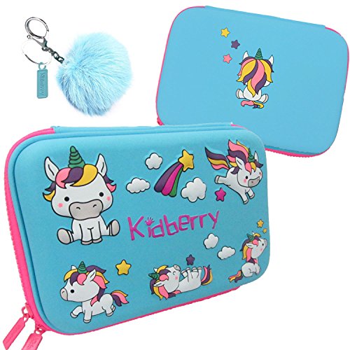 Pencil case for kids, The original brand Kidberry pen case for kids,pencil pouch, girls pencil case, Cute Unicorn 3D Unique design pencil box, comes with a matching Pom Pom key chain in a gift box