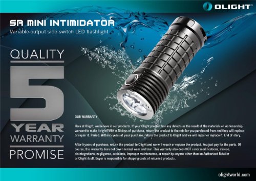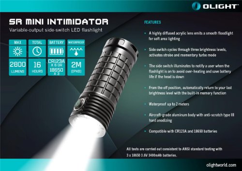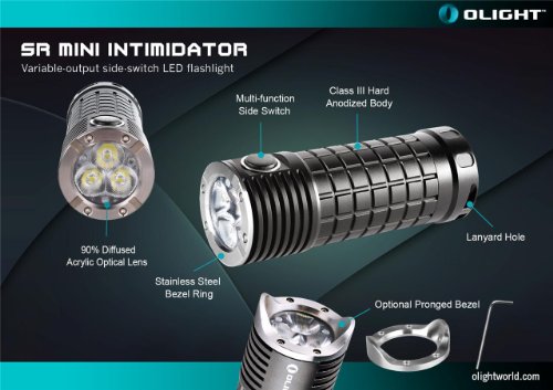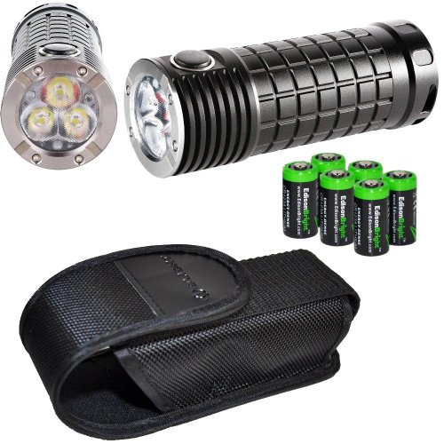 Olight SR MINI Intimidator 2800 Lumen Cree XM-L2 LED diffused Flashlight with six EdisonBright CR123A lithium batteries