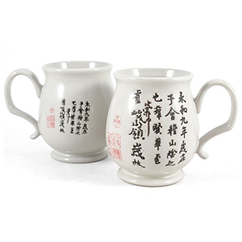 -. Title : Asian Kanji White Ceramic Footed Teacup 2 Pieces