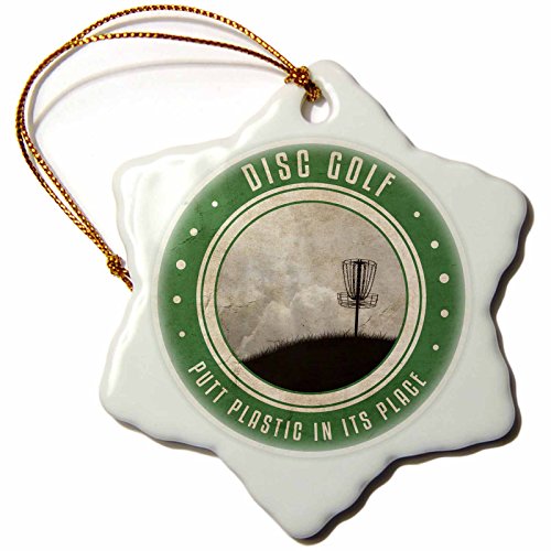 -. Binding : Kitchen -. Brand : 3dRose LLC -. Feature : High gloss finish / Overall size is 3 inches / Image printed on both sides / Gold string included for easy hanging / Great keepsake to commemorate any special occasion. -. Label : 3dRose LLC -. Manufacturer : 3dRose LLC -. ProductGroup : Home -. ProductTypeName : HOME -. Publisher : 3dRose LLC -. Studio : 3dRose LLC -. Title : 3dRose Perkins Designs Disc Golf - Putt Plastic In Its Place #12 - silhouette of frisbee disc golf basket on a hillside - Ornaments