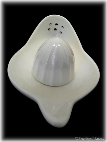 -. Feature : White Porcelain Hand Juicer / Perfect for Citrus Fruits / Microwave and Dishwasher Safe / Pouring Spout has Holes to Strain Seeds / White Box