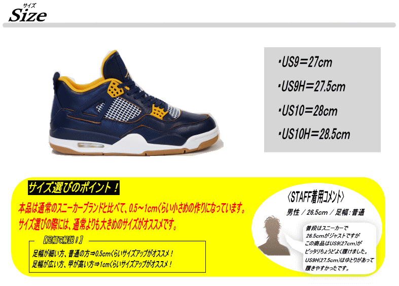 | 商品説明 | <BRAND STORY> 1968年設立のスニーカーなどのスポーツ関連商品を扱う世界的ブランド「NIKE」。 社名の由来はギリシャ神話の勝利の女神「ニーケー(Nike)」から。 エアフォース1,ダンク,エアジョーダンなど、数多くのヒットモデルを世に送り、現在もなお世界中の人々から愛されるブランドとなっている。 <ITEM INFO> ・大人気ジョーダンシリーズのシグネチャーモデル第4弾「AIR JORDAN 4」のNEW COLOR。 ・アッパーには耐久性に富んだデュラバック素材を採用。シューズの補強・軽量化・サポート性などの機能向上の目的で当時のモデルとしては革新的なメッシュパネルやプラスチック製のヒールカップを採用。歴代のAIR JORDANシリーズの中で唯一"FLIGHT"の文字がシュータンに記されたモデル。 ・こちらは、JORDAN BRAND SP16シーズンにラインアップされる"DUNK FROM ABOVE"シリーズのカラーリング。ネイビーを基調にしたアッパーにゴールドをアクセントに使用。 |