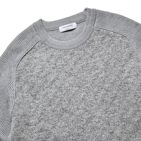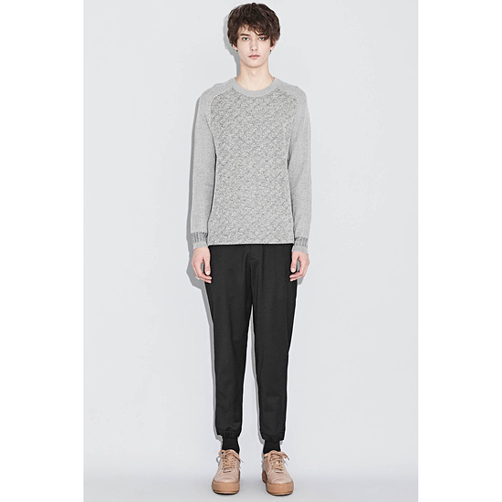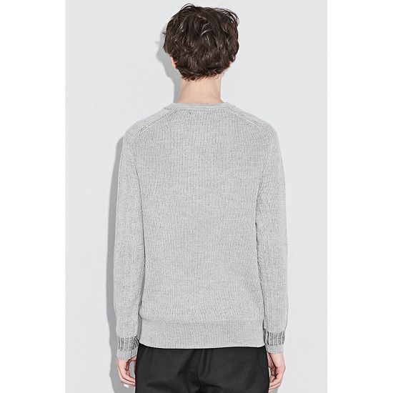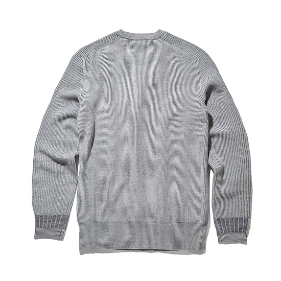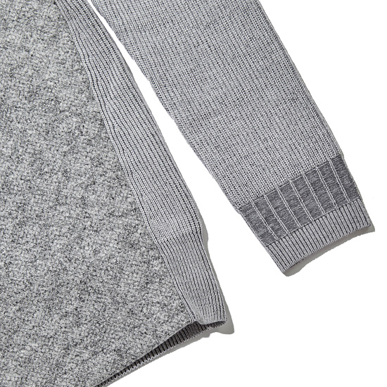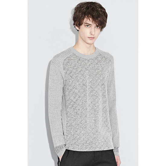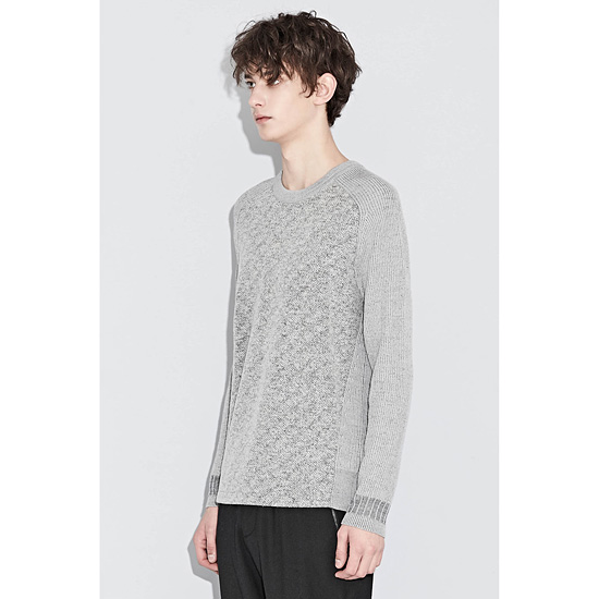 - 전면 혼방 소재의 배색으로 포인트를 준 남성 라운드넥 니트.
