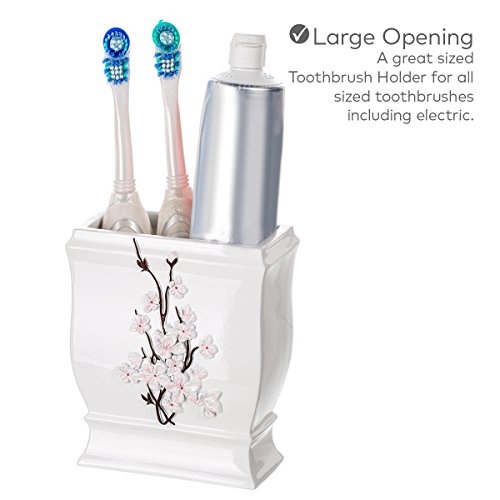 4 Piece Bathroom Accessory Set - Gift Package - Soap Dish and Dispenser, Toothbrush Holder, and Tumbler Cup - Vanda Floral Style - by Creative Scents