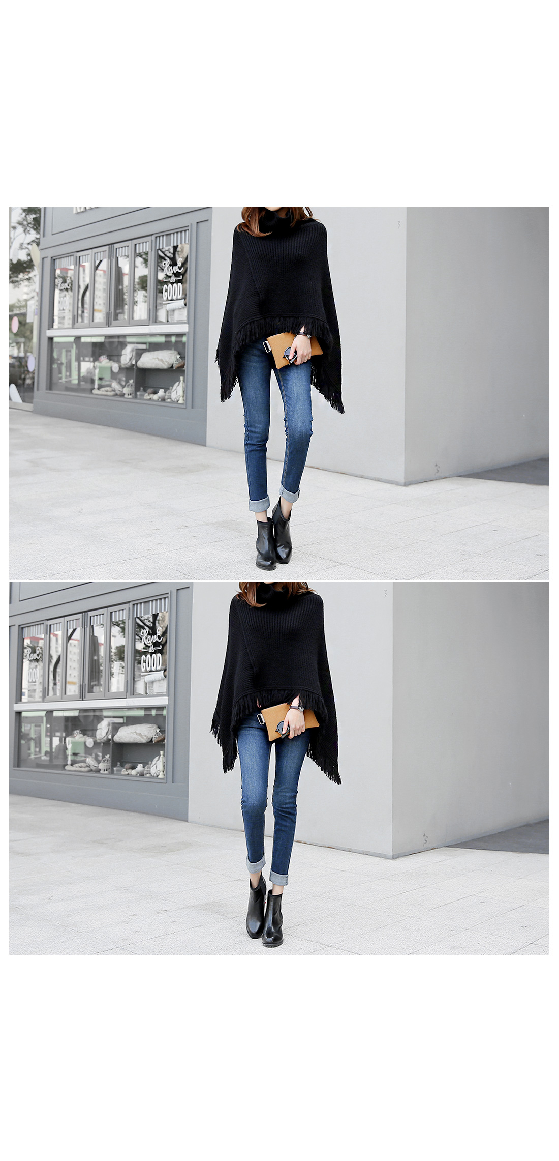 유니크한 매력이 돋보이는 판쵸니트에요!소매없이 편안하게 입어줄 수 있는판쵸 디자인으로 유니크한 연출은 물론바디를 가려주어 체형커버에도효과적인 니트 아이템이랍니다^^답답함없이 여유있게 넥을 감싸주는터틀넥 스타일이 세련미를 업시켜 주구요,밑단 수술 디테일이 멋스러운 아이템이에요~짱짱한 니트 짜임으로 늘어짐이 없구요,겨울까지 쭉~ 포근하게 입을 수 있어소장가치가 높은 니트판쵸랍니다!