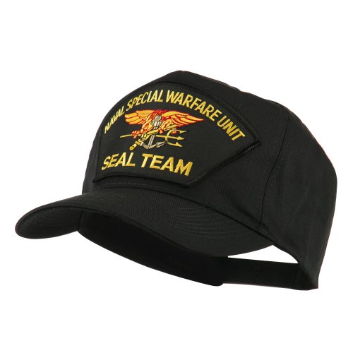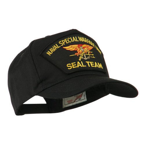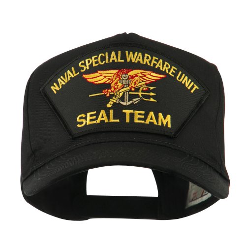 -. Binding : Apparel -. Brand : E4hats -. Color : Black/Blue -. Department : mens -. Feature : Made of 65% polyester and 35% cotton. / One size fits most with adjustable plastic snap closure, fitting up to XL size. / Same material inner hatband. / Adult/Unisex. / Crown measures 3 1/2 inches deep. -. ProductGroup : Apparel -. ProductTypeName : HAT -. Title : Navy Seal Team Large Patched Cap - Black Seal