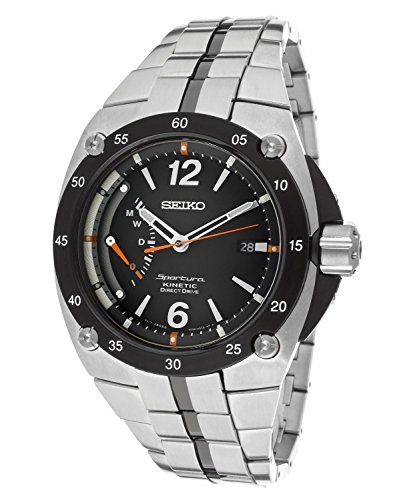원본상품명: セイコ? Seiko SRG005 Mens Stainless Steel Sportura Direct Drive Kinetic Black Dial Link Bracelet 男性 メンズ