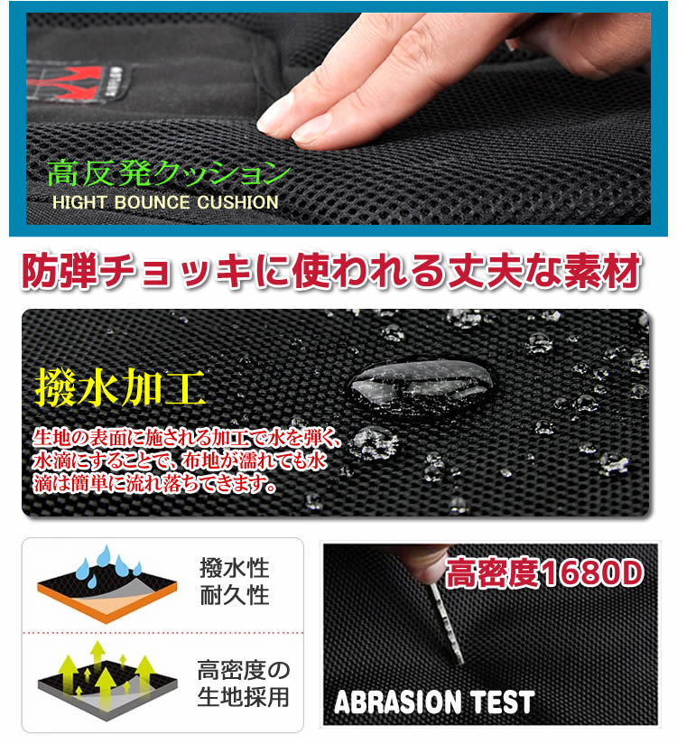 外側:1680Dバリスティックナイロン+ポリエステル