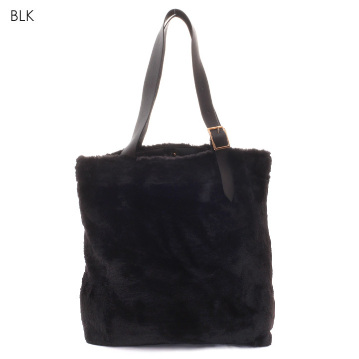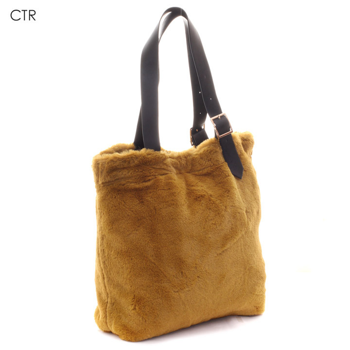 大容量サイズのかわいいモコモコフェイクファーを使用したトートバッグ。