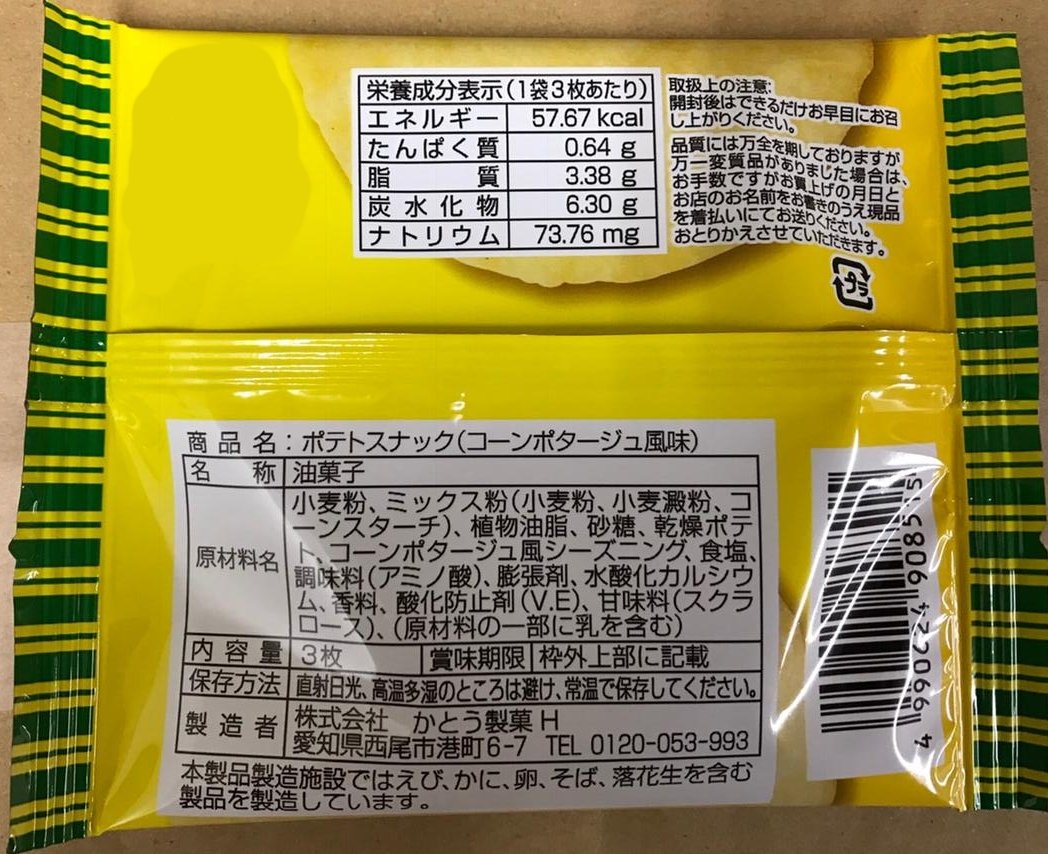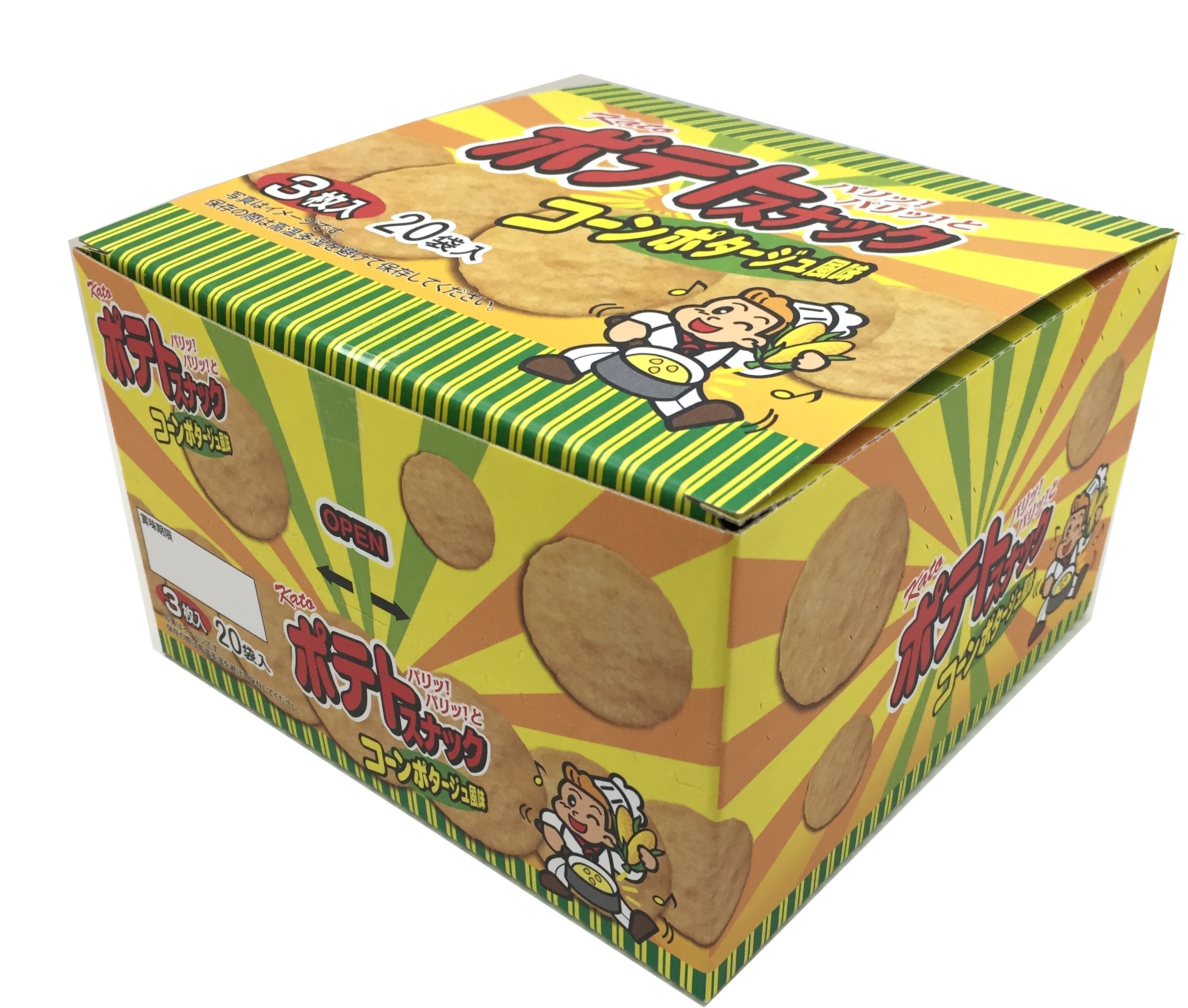 It is a corn potage flavor of sweets "potato snack" loved by children for many years as a staple product of sweets.